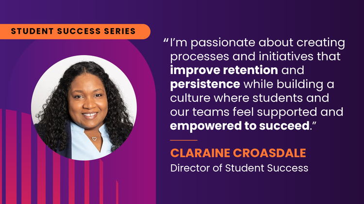 In this interview, we’re proud to feature Claraine Croasdale, Director of Student Success. Claraine shares her approach to defining and measuring student success and the strategies she’s implemented to improve retention. Utilizing tactics like proactive communication plans and data-driven interventions, Claraine exemplifies how thoughtful, learner-centered practices and strong, focused leadership can create lasting impacts on academic outcomes.