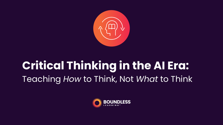 At Boundless Learning, we work to support learners who are tackling new ideas and developing skills. Given this, it’s important to reflect on how learning can be designed to actively foster critical thinking, encourage meta-cognition, and build curiosity in an increasingly complex world. In the era of generative artificial intelligence (AI), it is more important than ever to ensure we are going beyond expecting rote knowledge acquisition from our learners, and instead nurturing the skills and capabilities required to navigate this rapidly evolving digital world.