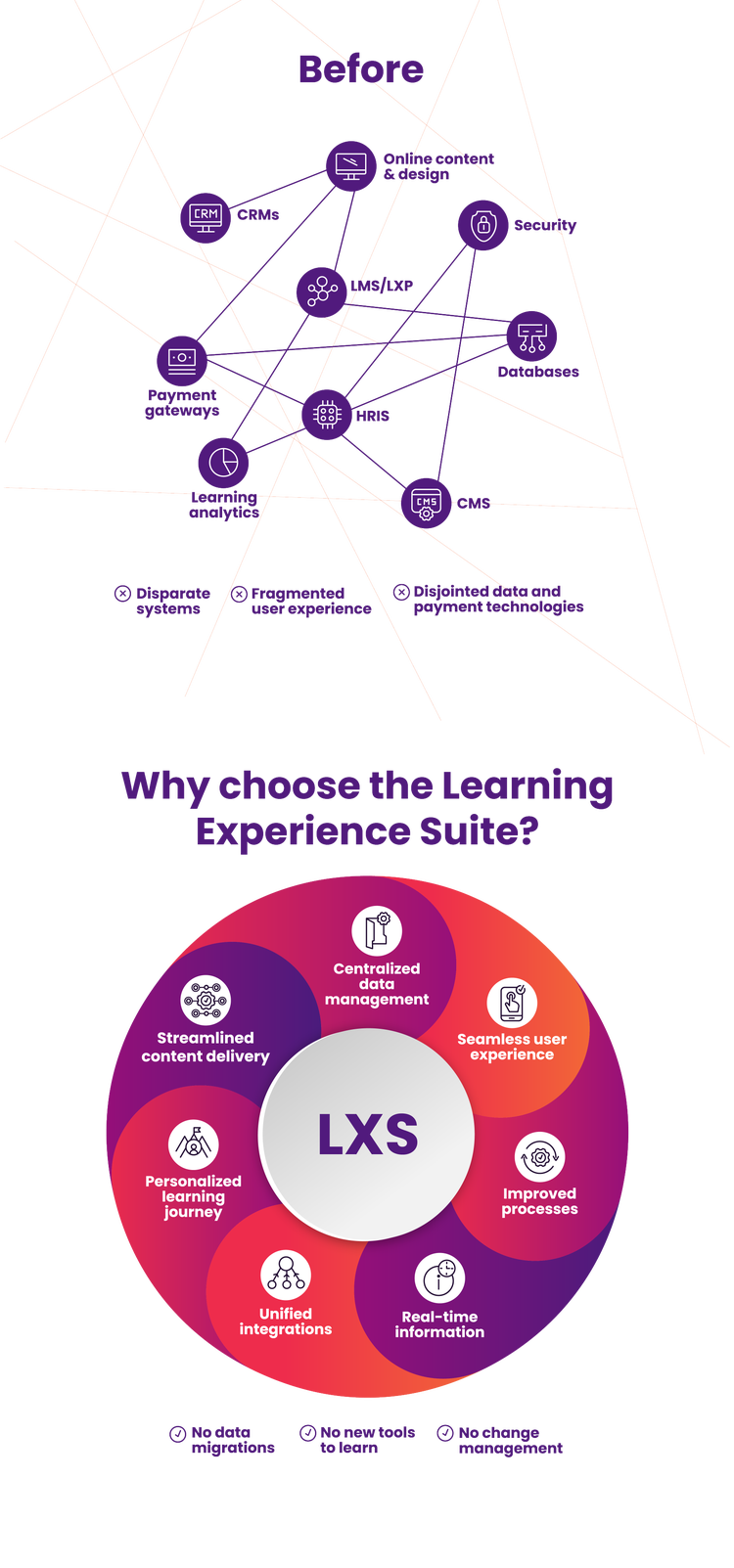 Whether you're in higher education, an association, or a corporate training environment, our digital ecosystem platform can integrate with your systems to streamline delivery and amplify impact.